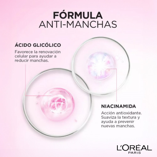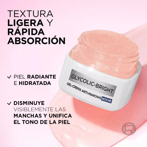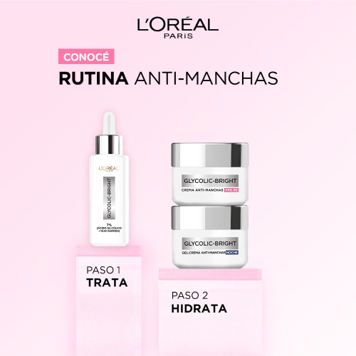 El Gel Crema de noche anti manchas reduce visiblemente las manchas durante la noche. Su fórmula exclusiva combina dos de los activos más eficaces contra las manchas: acido glicólico y niacinamida. Además, su textura en gel con micro capsulas, se fusiona con la piel para liberar vitamina E. Obtené una piel más radiante en 1 noche y disminuí visiblemente las manchas en tan solo 7 noches.