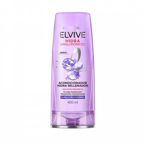 ¿Cabello deshidratado o pesado? ¡Hidrátalo con el nuevo Acondicionador Elvive Hidra Rellenador con Ácido Hialurónico! Deja tu pelo intensamente hidratado, ligero y brillante. #ElviveHialurónico Nuestro Acondicionador Hidra Rellenador, formulado con Ácido Hialurónico y sin sal, mantiene la hidratación en la fibra capilar para una transformación instantánea. 4 veces más hidratación. - Cabello hidratado y desenredado. - Frizz bajo control. - Cabello suave, ligero y brillante. Modo de uso Aplicar en puntas y largos sobre el cabello mojado después del shampoo ELVIVE HIDRA HIALURÓNICO. Dejar actuar y enjuagar. Para un cabello más hidratado, utilizar los otros productos de la línea ELVIVE HIDRA HIALURÓNICO. Evítese el contacto con los ojos y en caso de ocurrir, enjuague inmediatamente. Manténgase fuera del alcance de los niños. Si observa alguna reacción desfavorable, suspenda su uso.